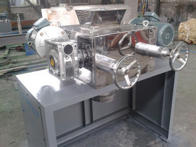 對輥式破碎機是專為粉體行業(yè)中一些由化學(xué)法生成的物料在生產(chǎn)工藝過程中(如干燥、燒結(jié))產(chǎn)生的團聚、結(jié)塊而形成的假顆粒的解碎而設(shè)計的。軋輥為剛玉陶瓷制成,耐磨性好,并且對物料無污染。本機設(shè)計獨特,制造精良,輥間間隙可調(diào),使用戶得到合適的產(chǎn)品。