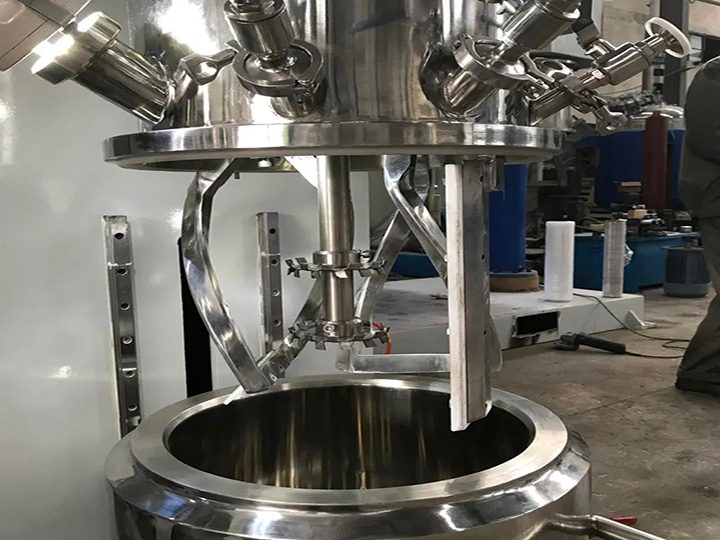 攪拌槳鑄造一次成型,槳與槳之間小達2mm、槳與底部間隙為1-2mm、槳與桶壁之間2-3mm;桶體內壁車床精加工,再經大型拋光機自動拋光,確保槳上的活動刮刀在旋轉時,把釜體內壁上的物料完全掛掉;