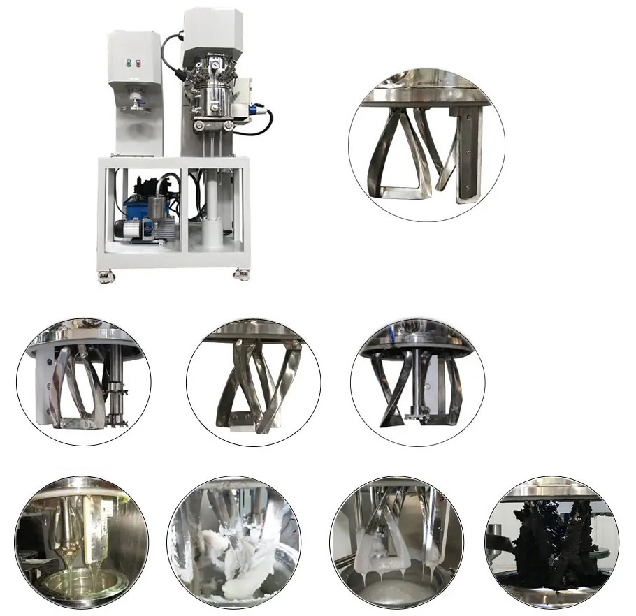 集反應、混合、混煉、分散為一體的高效、多用途設備;釜內攪拌槳,在公轉的同時也自轉,使物料上下及四周流動,從而在很短時間內達到混合效果,攪拌過程中無死角且效果是普通攪拌機的十幾倍;